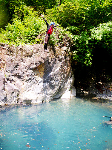 「青のキャニオニング」は大小7つの滝をスライダーや飛び込み 滝くぐり、最後に待つのは8Mオーバーの滝をスライダー!!