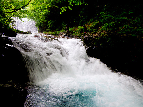 滝つぼの中は「青」皆さんが知っている水の色とは まったく違う「青」を見ることができるでしょう